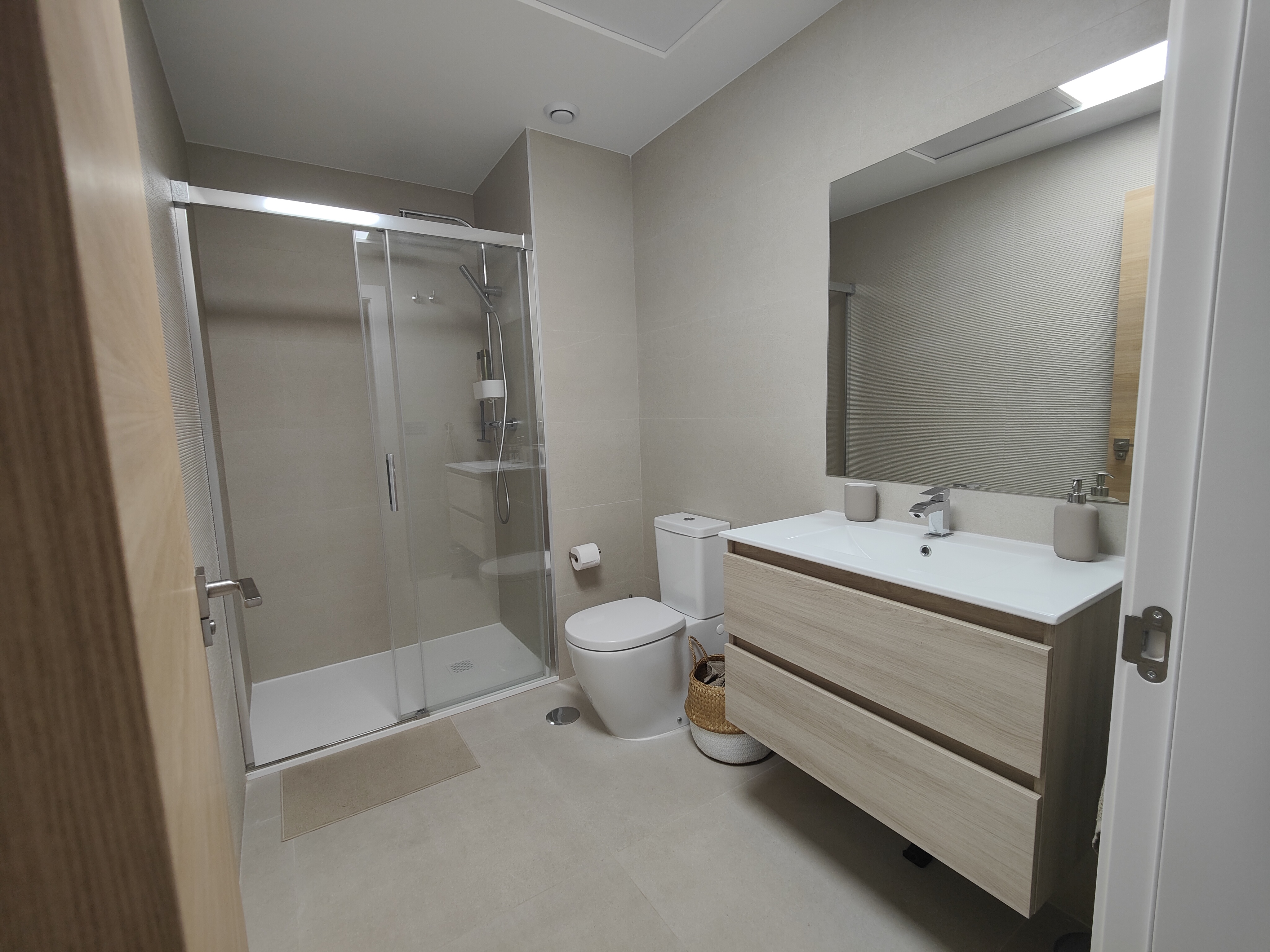 De woning beschikt over drie ruime, lichte slaapkamers voorzien van comfortabele bedden. Met twee moderne badkamers is er voldoende privacy voor iedereen.