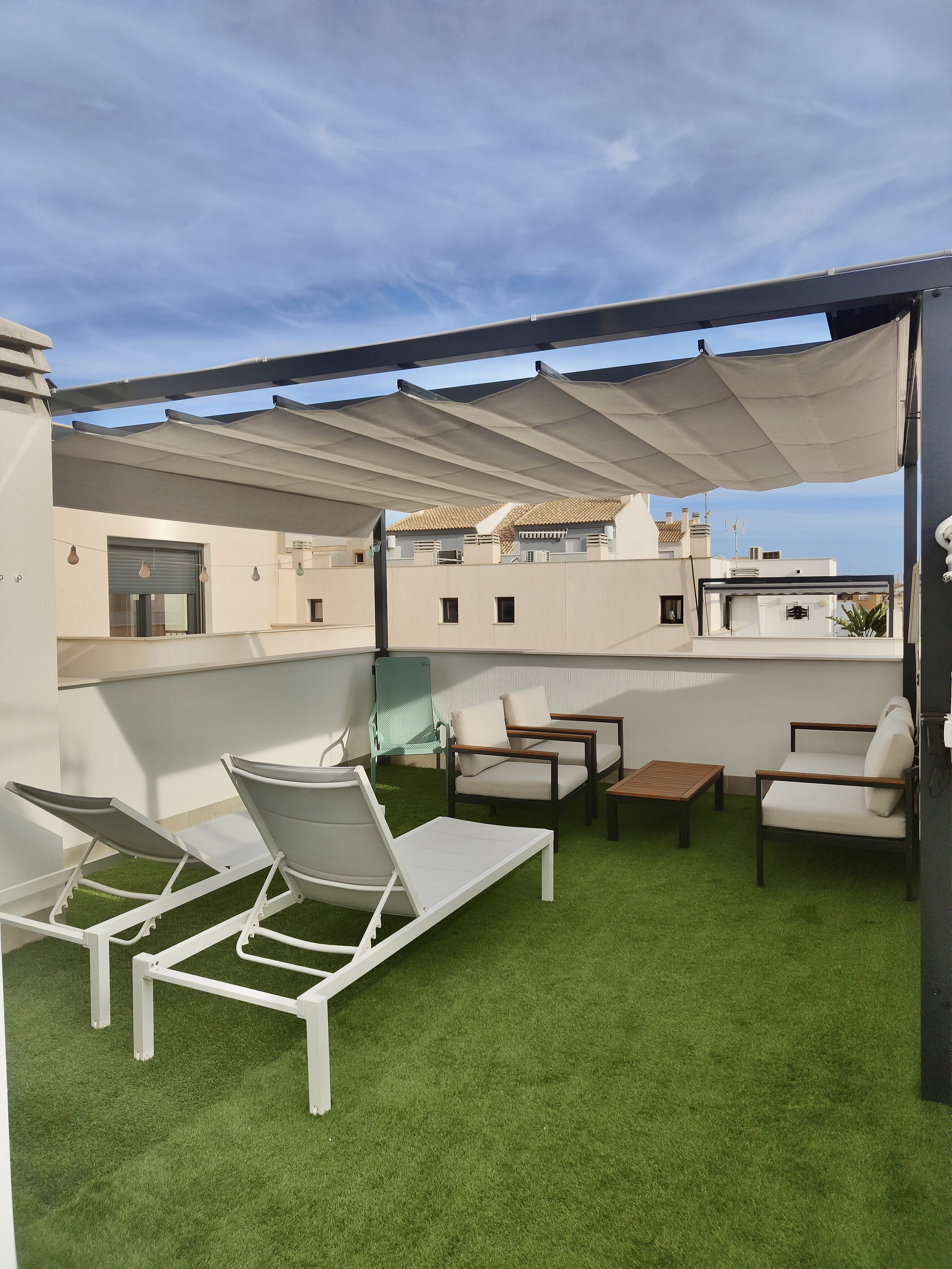 Het Spaanse leven speelt zich buiten af. La Mosa Sol beschikt over een privézwembad voor een verfrissende duik. Het absolute hoogtepunt is het riante dakterras met haar eetgelegenheid en loungegedeelte.